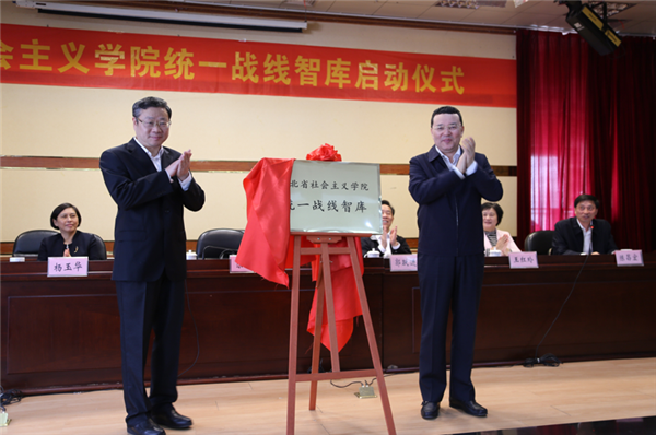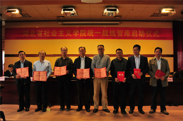 10月9日,湖北省社会主义学院(省中华文化学院)举行统一战线智库启动仪式,55位专家学者受聘为首批智库专家。省委常委、统战部部长尔肯江·吐拉洪为统战智库揭牌,并在会上做讲话,强调要把统战智库打造成为政治上靠得住、品牌上叫得响、成果上见实效的统战工作靓丽名片。