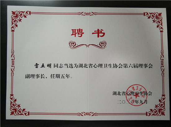 我院雷五明当选为湖北省心理卫生协会第六届理事会副理事长