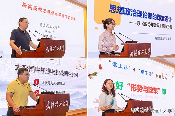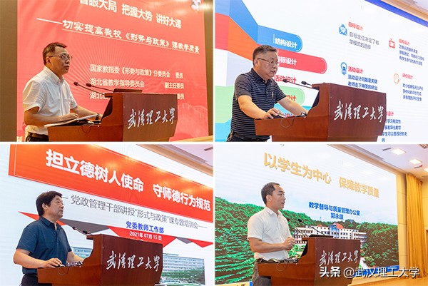 7月15日下午,马克思主义学院邵献平教授、许瑶副教授、刘国龙副教授、肖萍副教授先后作“形势与政策”课教学方法论辅导报告和示范教学。