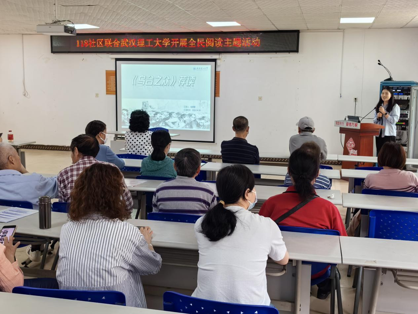 “讲话稿检验成色,写手如何过好这一关?综合类文稿顶着‘大半个天’,写手如何撑起这片天?专题类文稿出彩最多,写手如何找准发力点……”在120社区,陈思奇同学推荐了一本写给写稿人看的书——《文稿起草新八问》,她结合视频与PPT,给在场的人介绍了各类文稿写作的方法,可谓干货满满。紧接着,李靖祎、张涵两位同学依次分享了近期读过的好书与感悟,带领大家一起体会文字所能达到的深度与力量、了解不同文化与文明之间的差异。武汉理工大学马克思主义学院教授许传红也分享了自己的阅读经验和建议,鼓励居民继续深化阅读,提高阅读水平和能力。