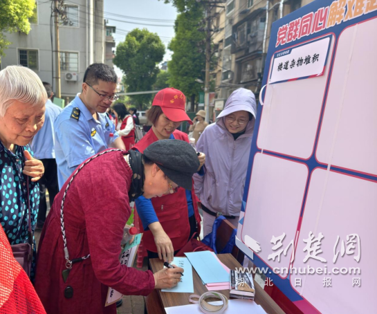 “练・思想解码”板块别出心裁,极具挑战性。在117社区的“党建引领聚合力 共解社区治理题”摊位,居民们抽取写有如“楼道杂物乱堆乱放”“如何调动居民加入社区文体团队”等社区常见问题的纸条后,纷纷在纸条上写下如制定党员“责任区包干”制度,实行党员“结对帮扶”清理计划,选举党员文化领航员,通过党组织协调资源、提供活动场地、设备支持等破解方法,大家集思广益,用党建思维为社区治理难题出谋划策。不一会儿,摊位后的“党群同心解难题 社区治理齐献计”背板上就贴满了妙计。