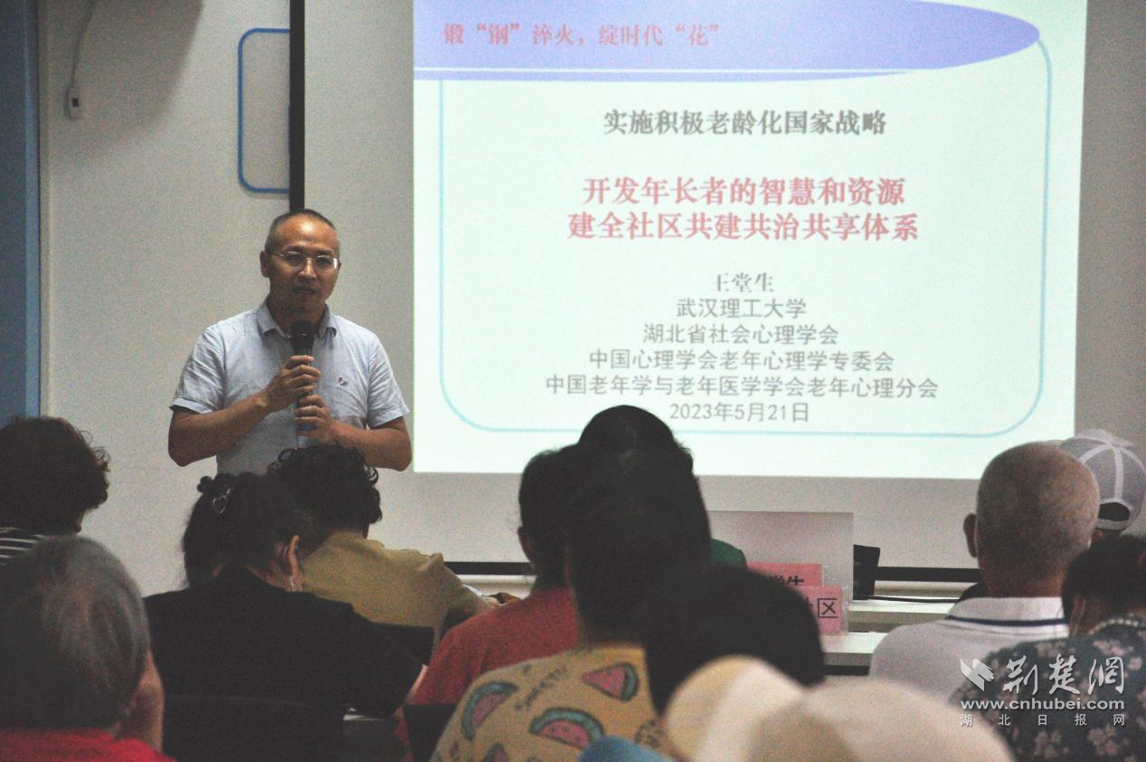 “六十而耳顺,七十而从心所欲不逾矩。”在111社区,马克思主义学院副教授王堂生引用《论语·子罕篇》中的一句话,引出了宣讲主题——“实施积极老龄化国家战略 开发年长者的智慧和资源”。他围绕党的二十大精神,深入浅出地分享了实施积极应对人口老龄化国家战略的相关政策,强调了开发年长者智慧和资源的重要性,建议广大基层工作者应从生理、社会、心理三个层面去开发年长者的智慧,鼓励他们积极参与社区治理,成为老年观察者、教育志愿者、社区领读人,推动建全社区共建共治共享体系。