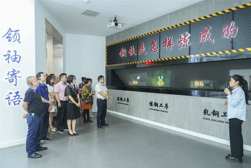 这次主题调研活动采取实地参观与现场交流的方式进行。学校师生一行来到宝武集团武钢文化旅游区。在园区展厅,师生们详细了解了武钢的历史沿革和发展历程,集中观看了宝武集团主题宣传片。