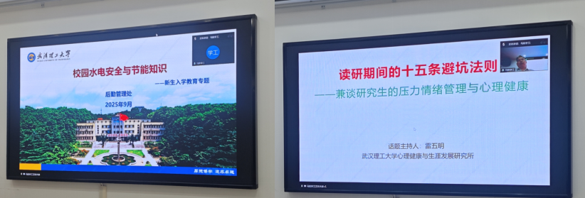 9月9日下午3点30分,后勤管理处能源科吕志刚老师开展了“校园水电安全与节能知识”主题教育讲座。结合大学生常见的电信诈骗、校园贷、知识产权保护等案例,讲解法律风险防范要点。16点30分,学院雷五明副教授开展了心理健康教育讲座,帮助新生适应集体生活、缓解入学焦虑,教新生识别负面情绪、掌握积极心理调适方法,并鼓励新生主动利用学院二级心理工作站、学校心理咨询中心等资源,学会自助与求助,鼓励同学们以积极乐观的态度面对求学旅途中的一切挑战。