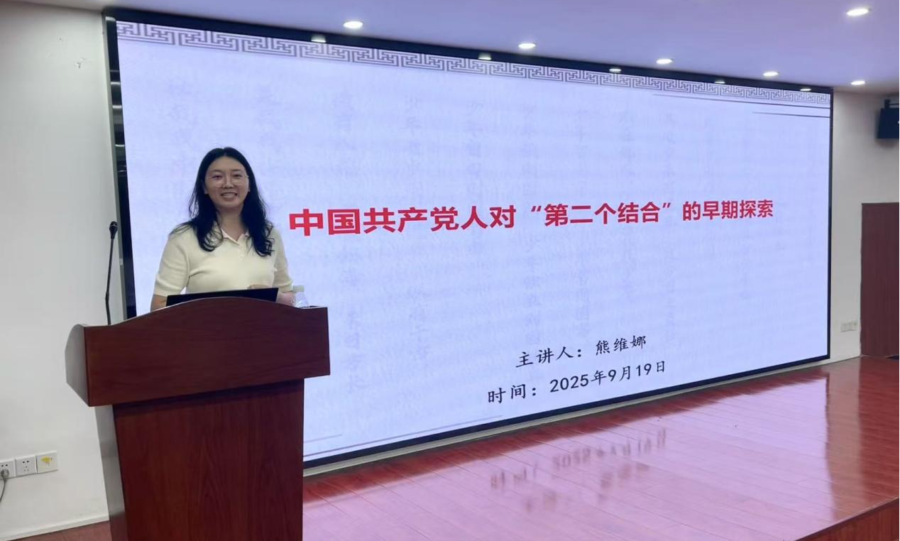 熊维娜博士以中国共产党人对“第二个结合”的早期探索为题,重点从早期中国共产党人对待传统文化的基本态度、早期中国共产党人探索“第二个结合”的具体实践内容、早期中国共产党人探索“第二个结合”形成的经验启示三个方面进行讲解,系统梳理了党在早期探索“第二个结合”过程中的理论思考与实践脉络。