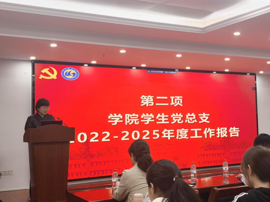 黄华莉同志代表学院上一届学生党总支作2022-2025年度工作报告。报告回顾了过去三年学院学生党总支在学校、学院党委的正确领导下,团结带领广大学生党员同志坚持抓好各类思想政治教育活动,注重示范推广,提高党员的党性修养;坚持强化制度建设,抓好党员教育、培养、发展工作,重视组织生活,发挥基层党组织的战斗堡垒作用;坚持规范开展支部活动,参与特色研学研讲、志愿服务、党员先锋活动,增强组织凝聚力和向心力;坚持选树榜样,学院样板支部培育、党员标兵示范取得成效,彰显了党员先锋模范作用。报告强调,学院学生党总支将进一步学习领会并落实党的二十大以来的精神和要求,持续推进“一融双高”建设,推进学生党建工作内涵进一步提升、质量进一步提高。