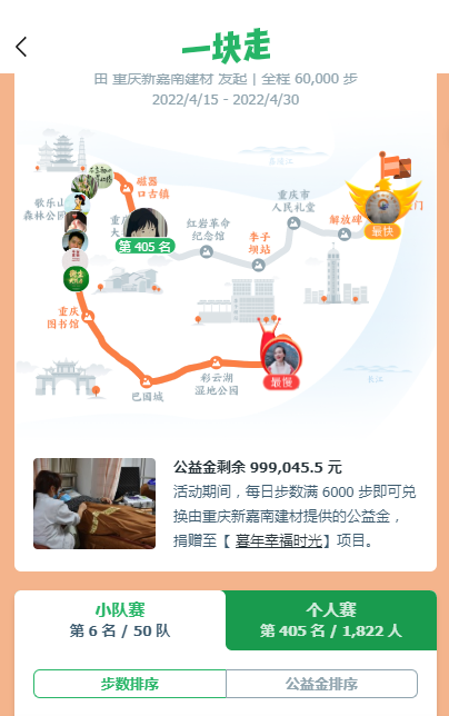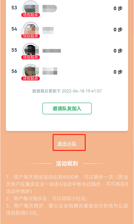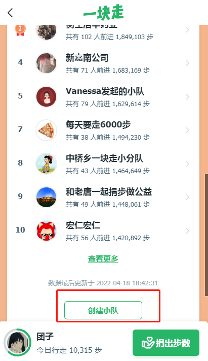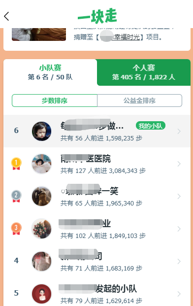 4.进入队伍后,点击 捐出步数完成每日捐步(6000步起捐)。