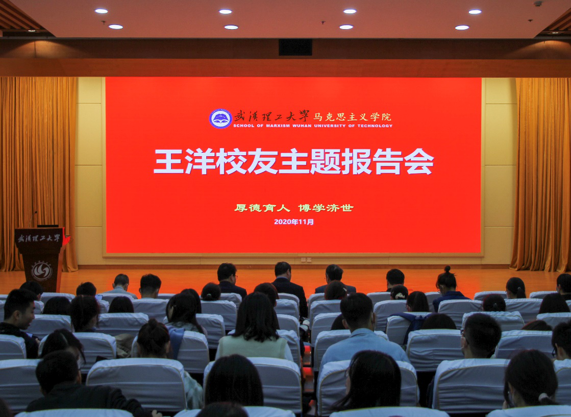 聘任仪式由学院党委书记毛传清主持并宣读了《武汉理工大学马克思主义学院关于聘请王洋先生为兼职教授的决定》。此外,毛书记还向同学们介绍了王洋校友的教育背景、工作经历和主要成果,对其在集中养老服务等方面的创新探索和实践给予了高度评价。